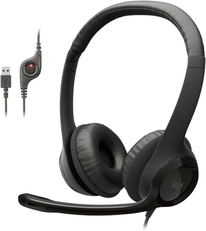 Logitech H390 Wired Headset for PC/Laptop, Stereo Headphones with Noise Cancelling Microphone, USB-A, in-Line Controls for Video Meetings, Music, Gaming and Beyond - Black, 1 Pack
