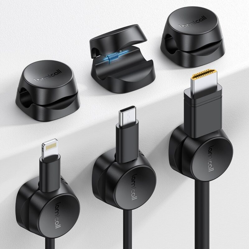 Lamicall Spring Cable Clips Holder, 6Pack [1s Lock] Cord Organizer Cable Management, [Easily Pull Cables In & Out] Desk Cable Organizer, Strong Adhesive Wire Organizer Keeper for Nightstand Car Office