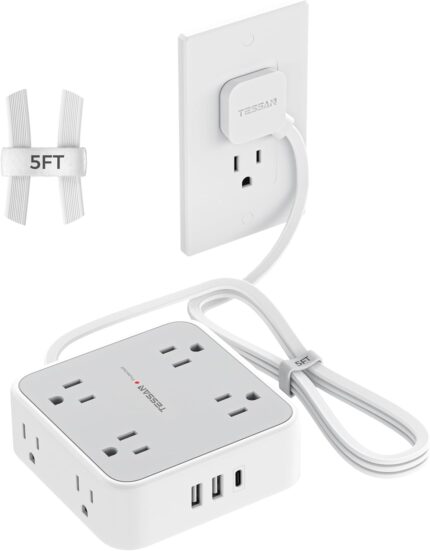 11 in 1 Power Bar: Power bars with surge protector has 8 AC outlets (1250W Max), 1 USB C (15W